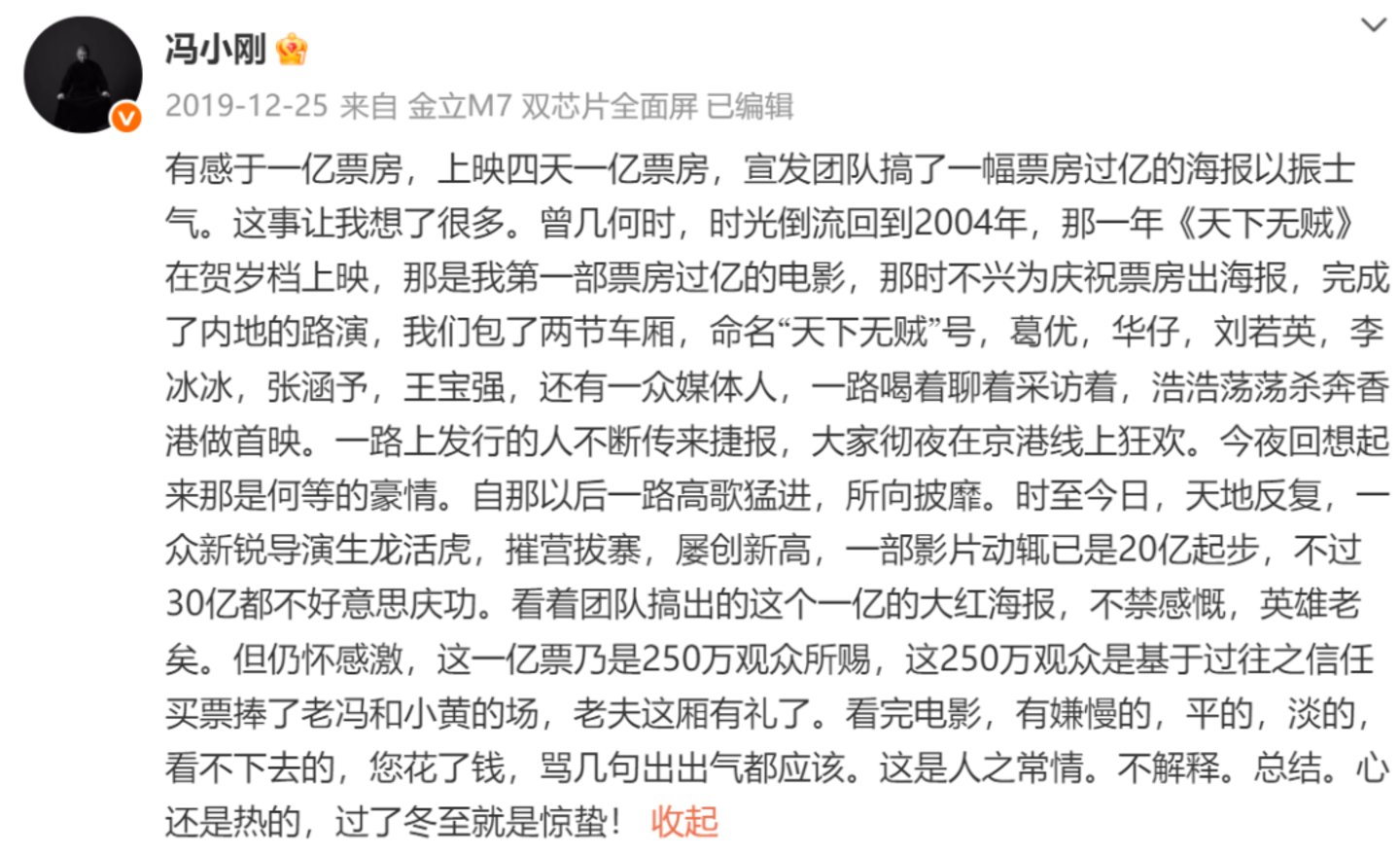 大导冯小刚,也有两个值得关注的消息。