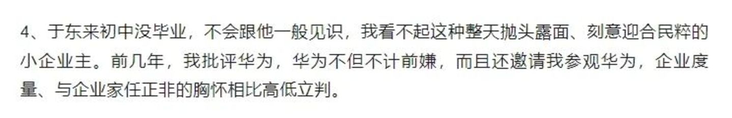 随后发布长文,先扣“河南企业耻辱”大帽,再爆创始人于东来“初中没毕业”的学历梗。