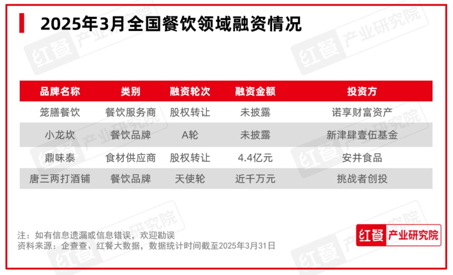 2025年3月,餐饮领域融资事件总数较2025年2月有所减少,餐饮服务商和品牌IPO新动向有新的进展。