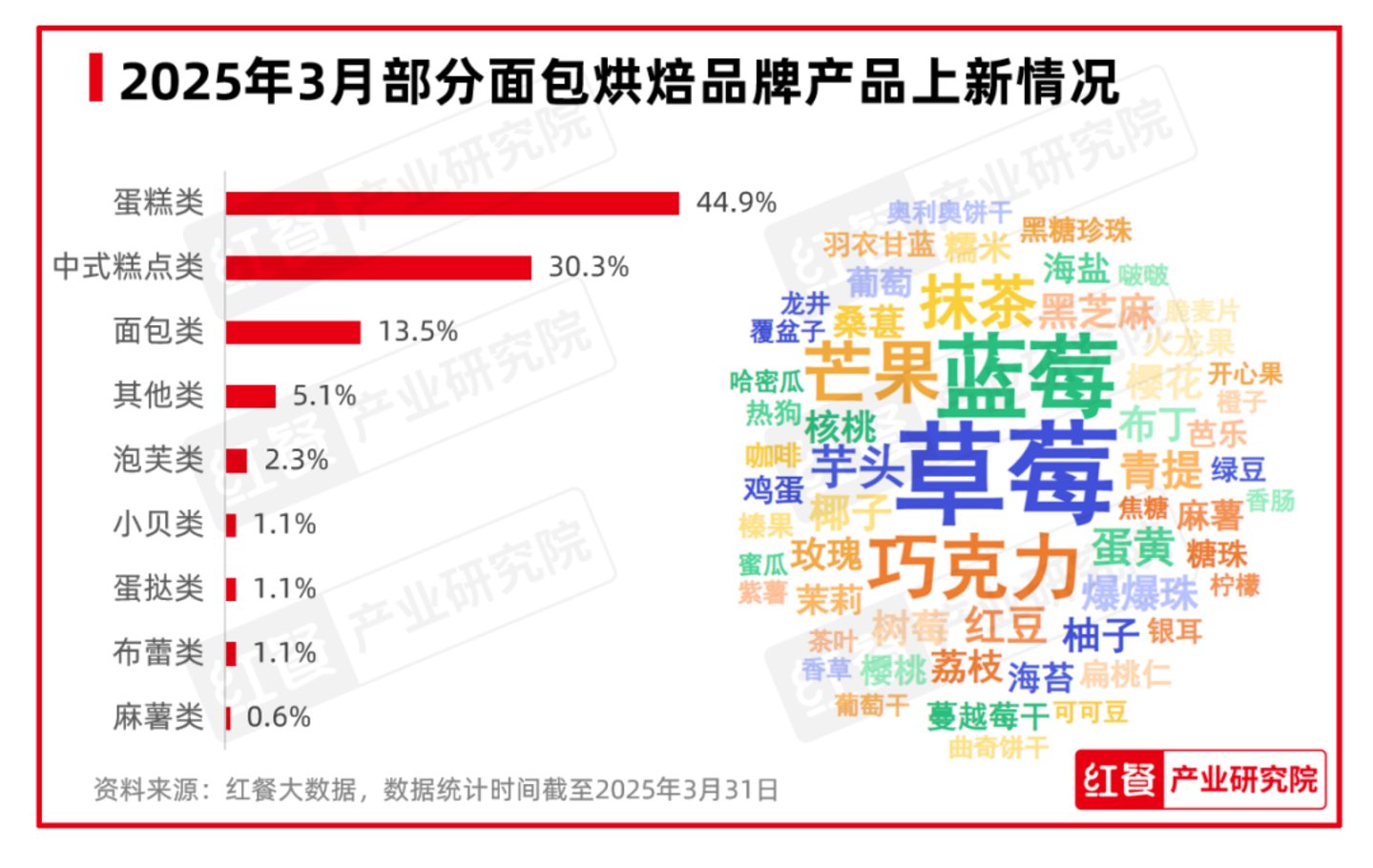 2025年3月,在红餐产业研究院监测的面包烘焙品牌中,有36个面包烘焙品牌共推出了178款新品。