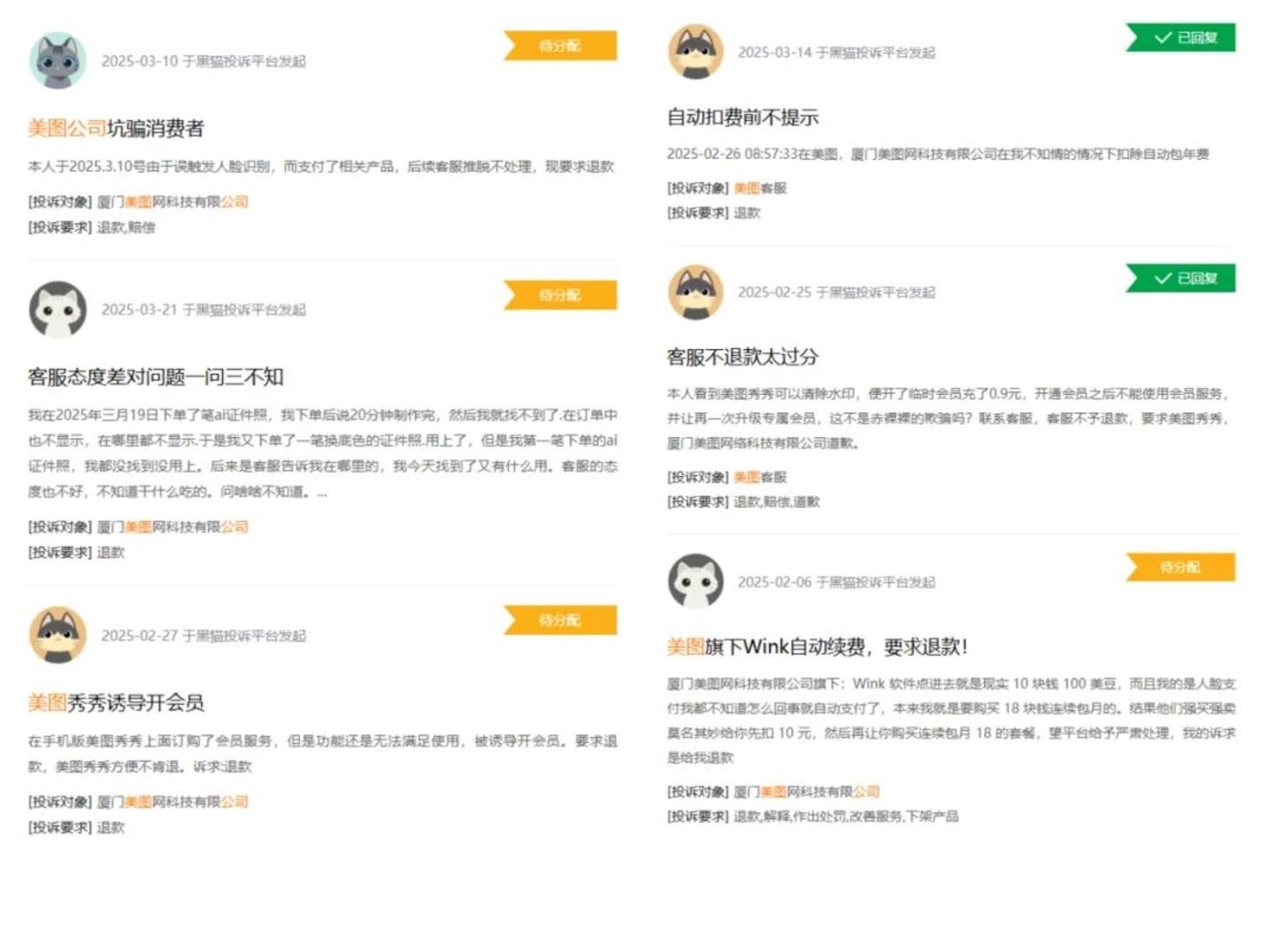 而在近两年AI的火热语境下,美图又开始压中这一板块,并通过付费订阅的方式直接把“变美”做成了生意。不过,由于服务和付费体验不佳,美图再次受到诟病,社交平台上引发不少消费者吐槽。