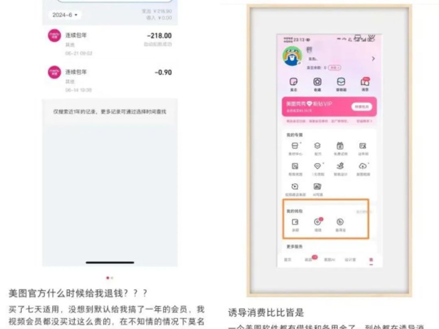 在小红书等平台上,也有用户吐槽称,“买了七天试用,没想到默认给我搞了一年的会员......在不知情的情况下莫名其妙就被扣了钱,218元不知道坑了多少人。”此外,更有用户质疑,“一个美图软件都有借钱和备用金了”,平台上“避雷”“诈骗”“吃相难看”等字眼十分醒目。