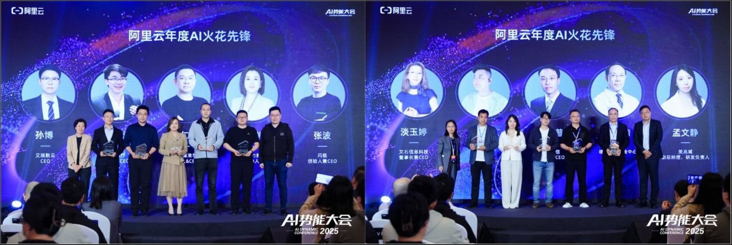 会上,“阿里云年度AI火花先锋”正式公布,共有十位企业家、创业者、技术先锋获得荣誉。在过去一年,他们带领团队在AI应用上取得突破性进展。