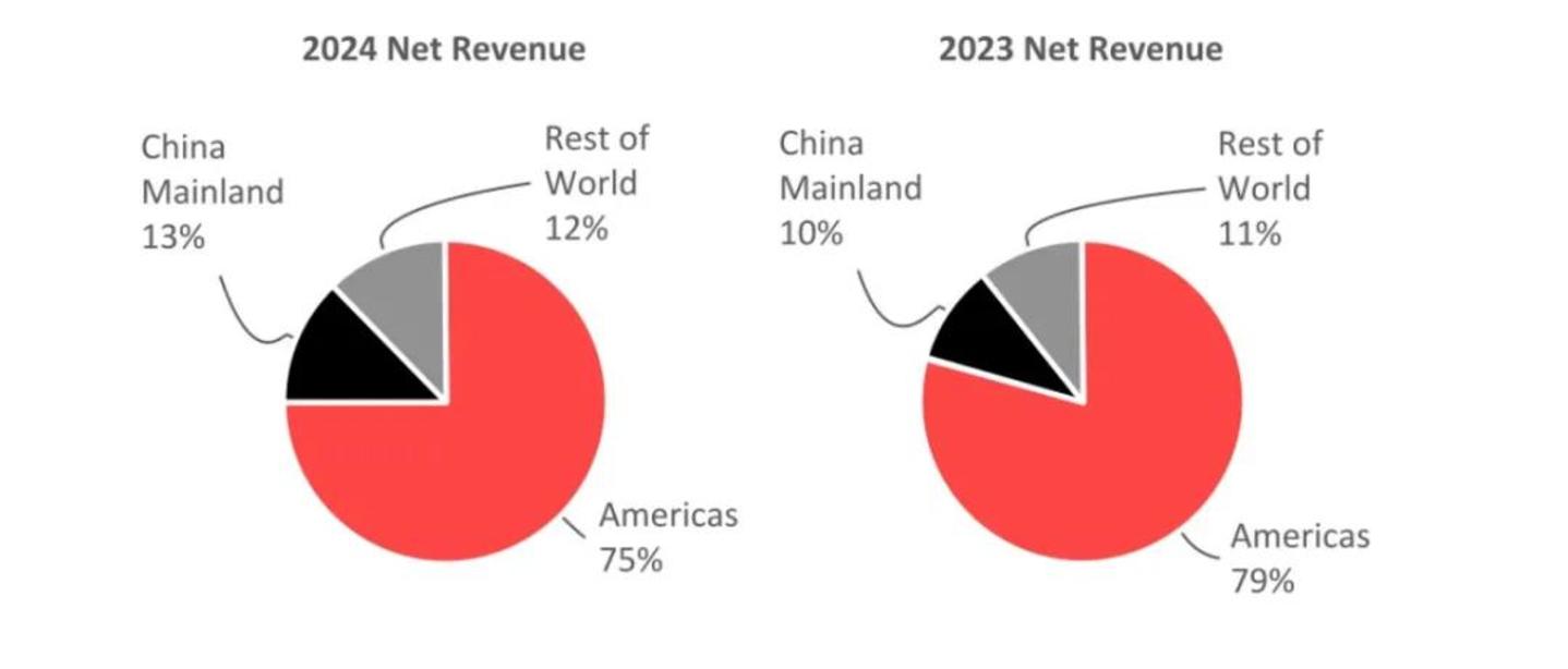 这种持续的高增长让市场形成了惯性期待,以至于当2024财年国际业务34%的增速与美洲市场4%的温吞增长形成对比时,投资者更倾向于关注“神话褪色”的迹象。尤其当财报披露,美洲市场可比销售额同比下滑1%时,焦虑情绪被进一步放大——这个贡献公司71%营收的核心市场,现在确实是遇到了增长瓶颈。