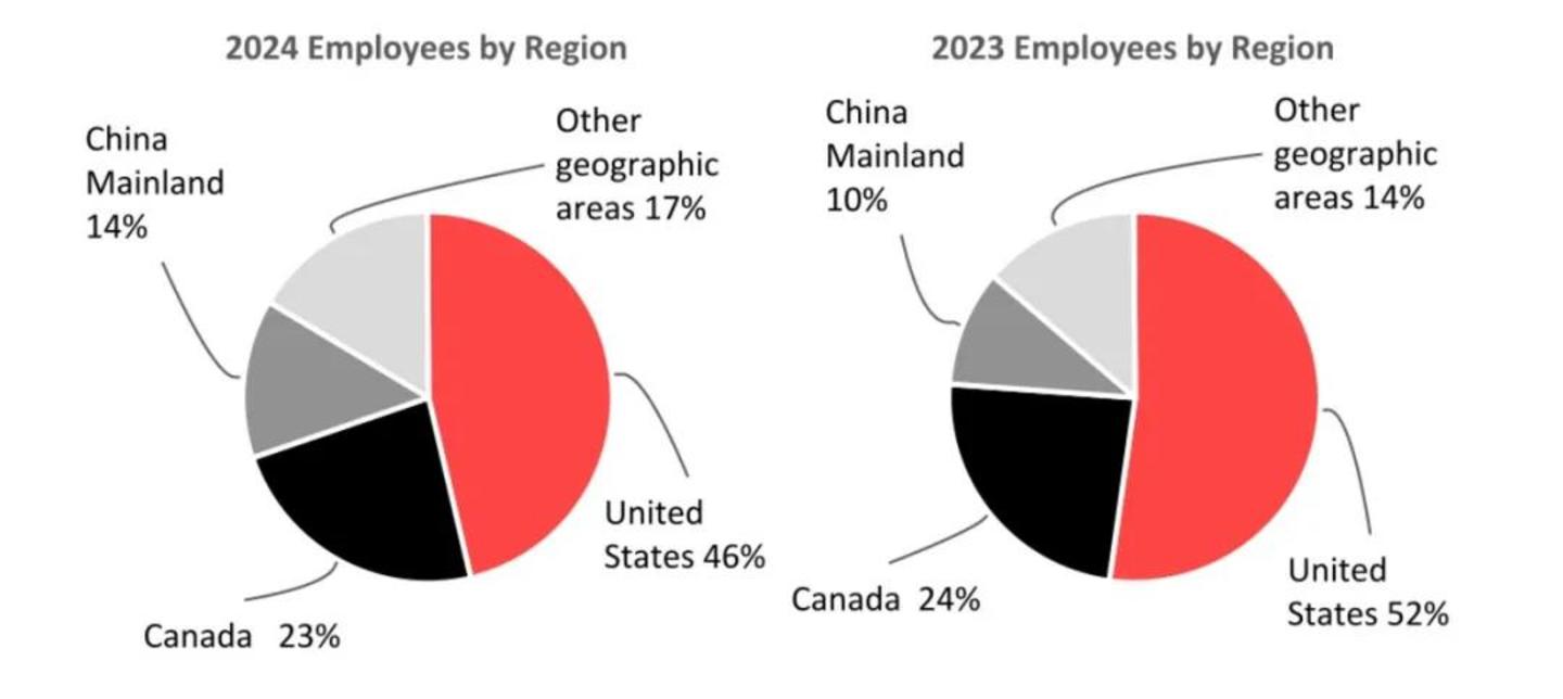 扩张自营门店,势必会带来租金、员工以及运营等诸多成本费用的增长。从财报来看截至2025年2月2日,品牌在全球雇用了约39000名员工,对比2023财年,Lululemon在中国和世界其他地区市场的雇员占比都有明显提升。