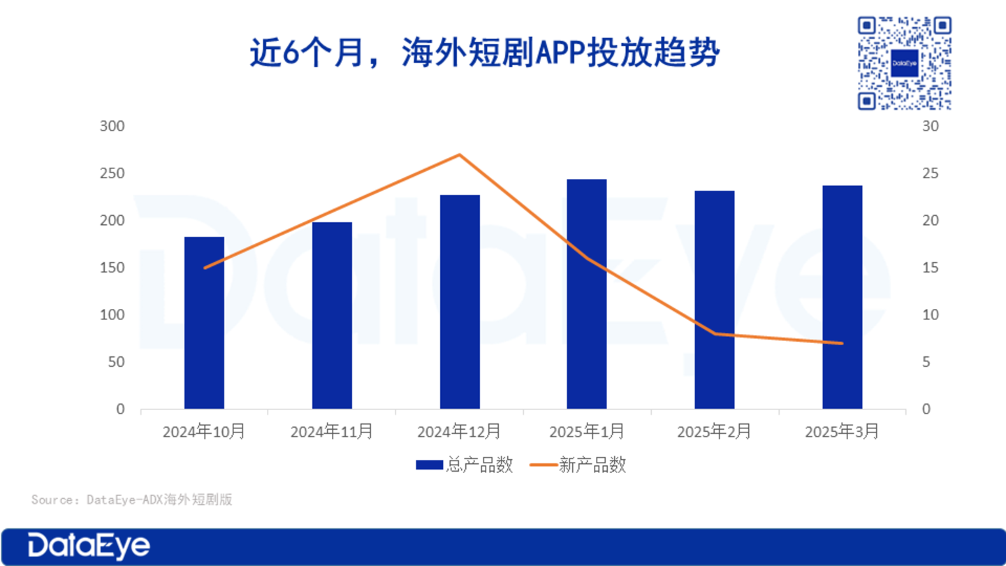 第二,广告投放激增:2025 年 Q1 海外短剧投放素材量环比 2024 年 Q4 大幅增长 46%。
