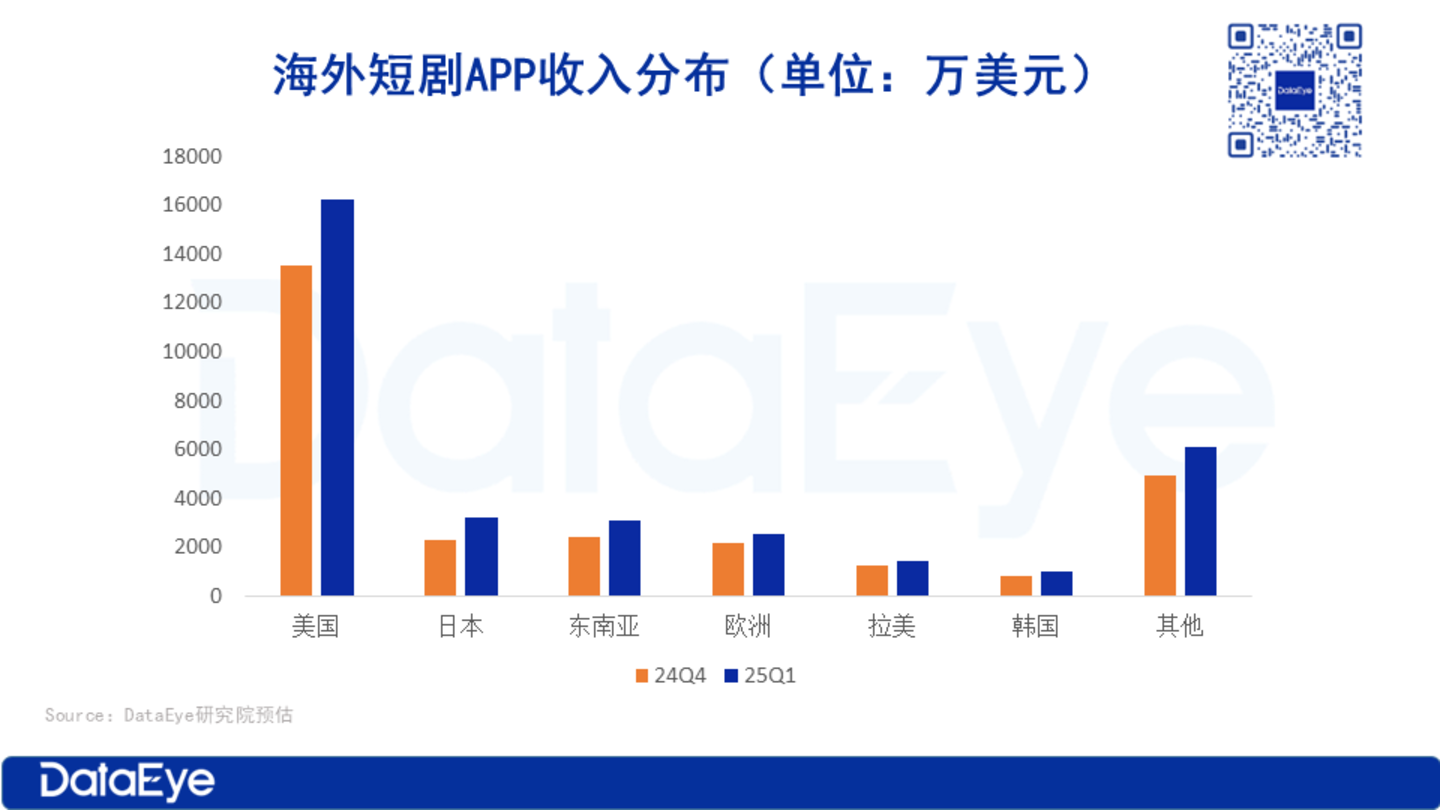 2025Q1,美国、日本和东南亚位列收入榜前三,收入分别为1.62亿美元、3216万美元和3061万美元。