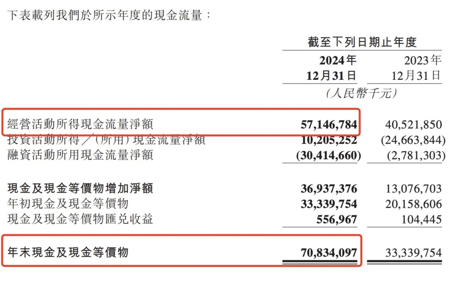 数据显示,2024年全年:京东经营活动产生的现金流量净额为580亿元。2024年,美团经营活动所得现金流量净额为571亿元;现金及现金等价物增加净额为369亿元;年末现金及现金等价物为708亿元。