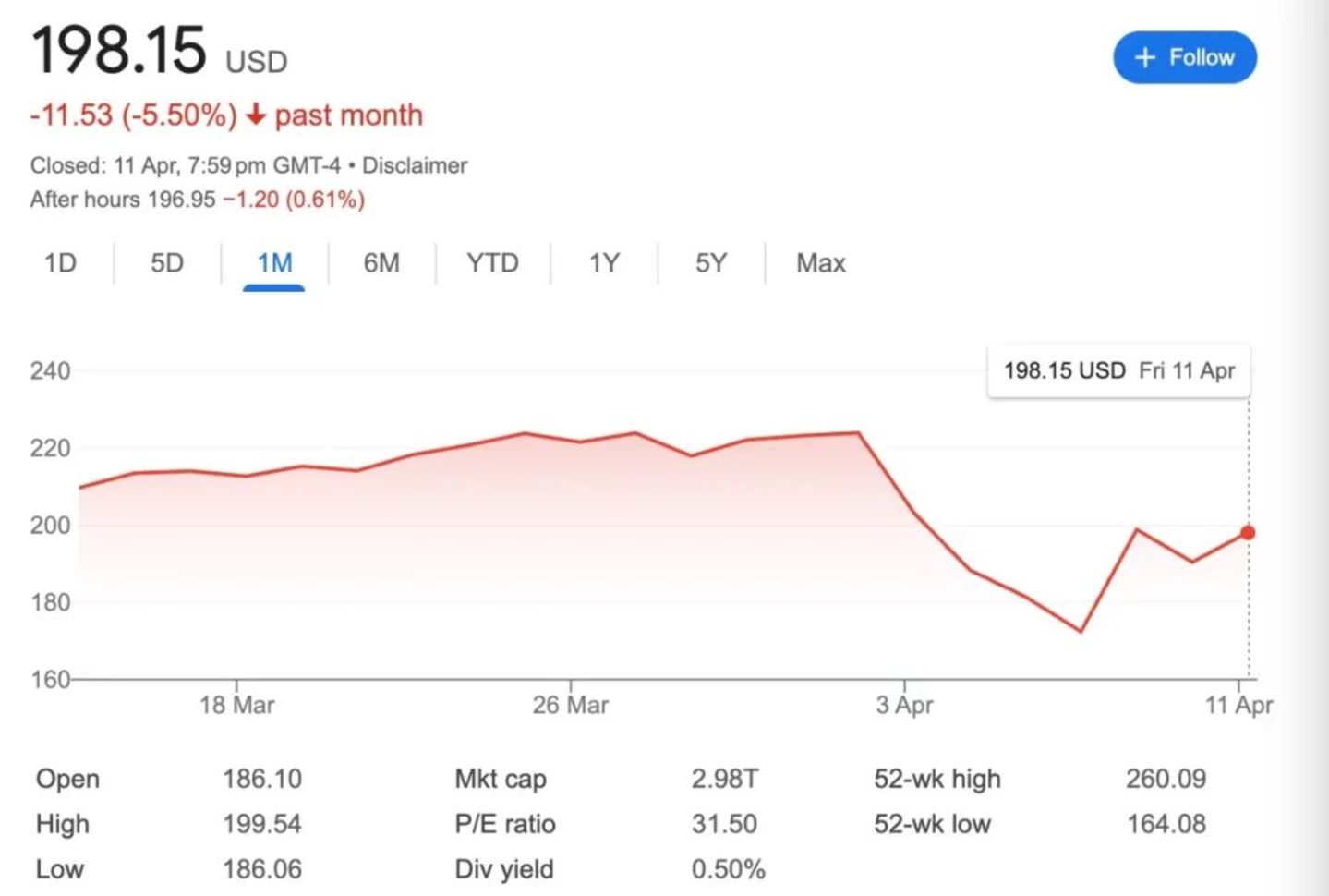 朝令夕改的关税政策,苹果市值先是蒸发千亿美元,后又因关税豁免等消息,股价短暂回升。