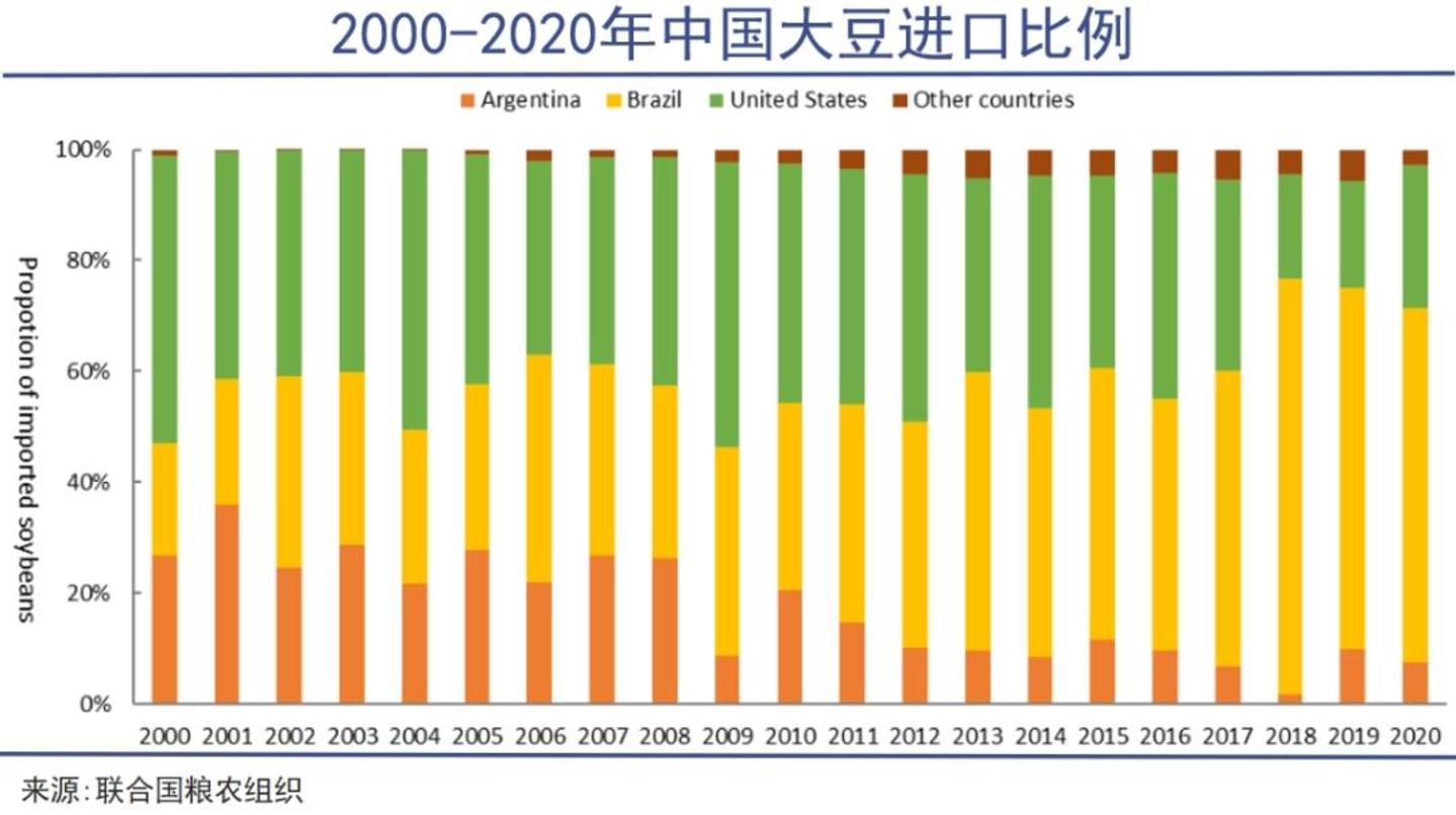 上一轮贸易战打响后,我国逐步减少美豆进口。自2020年开始,世界第一大豆生产国巴西,逐渐成为这场中国大豆供应重构的最大赢家。
