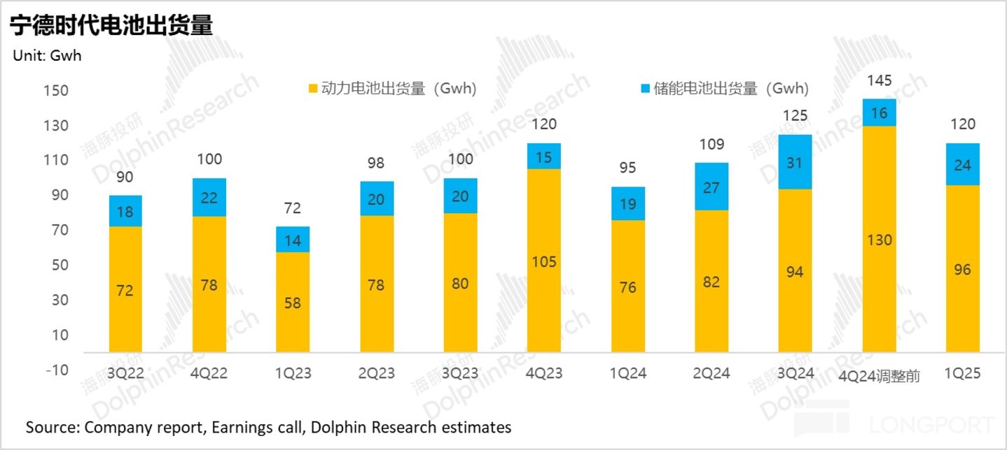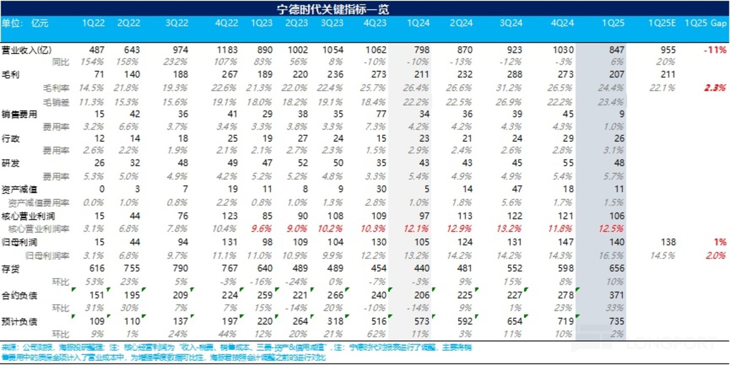 根据管理层业绩会披露,本季度电池实际销量 120Gwh,而市场对于 2025 年一季度的销量预期都还在 130-140Gwh,所以实际出货量和市场预期之间差不多有 10-20Gwh 左右的预期差,这也是收入不及预期的主要原因。