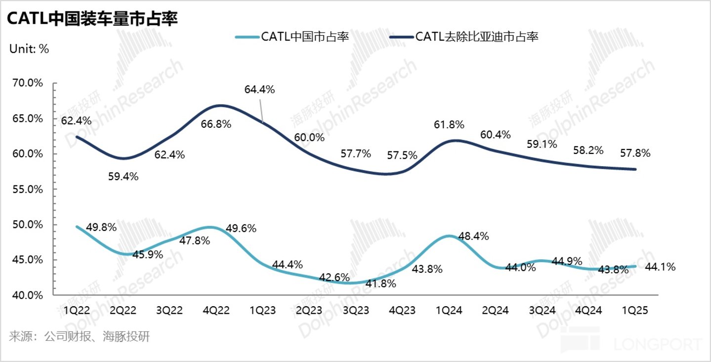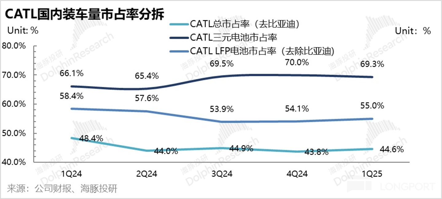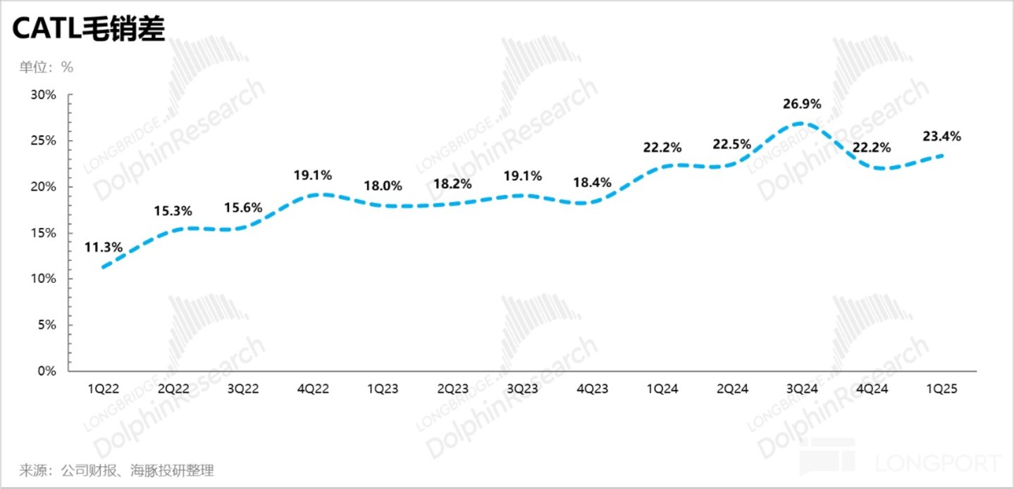 3)整体毛利率端表现不错,环比略有上行:从宁王毛利率端口径来看,毛利率环比去年 Q4 实际 23%-24%(将销售费用质保金纳入销售成本后,与 1Q25 在会计口径一致下的数据)还略微环比上行了,本季度实际毛利率 24.4%,也超出市场 22.1% 的毛利率预期,所以毛利率端表现还可以。