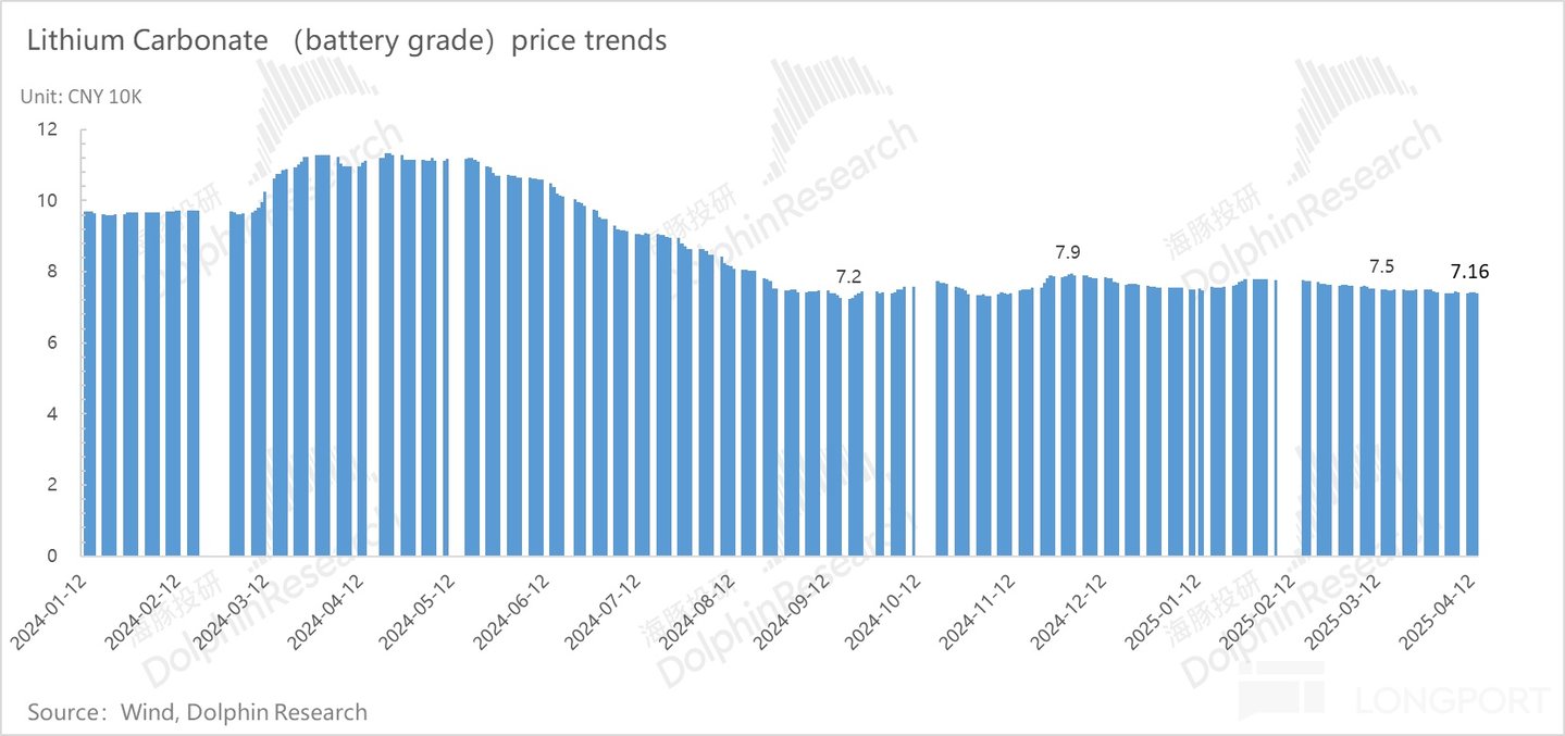 上季度上游供应链铁锂、负极、六氟磷酸锂、铜箔等环节开始涨价,一定程度上也拉高了上季度的采购成本,而本季度上游原材料尤其是碳酸锂成本又继续出现环比下滑的趋势(电池级碳酸锂价格从四季度高峰 8 万元/吨下滑到目前 7.2 元/吨),锂矿仍然还处于供给过剩的阶段。