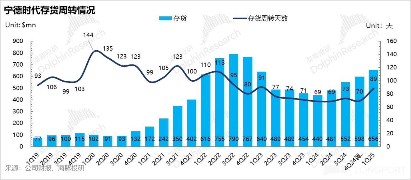 但从本季度实际表现来看,宁王本季度出货量是不及市场预期的,且存货还在继续积压,尤其是在储能业务面临国内强制配储取消 + 海外尤其美国关税的冲击,有些担心宁王本季度增加的存货是对储能电池的过度备货导致的。