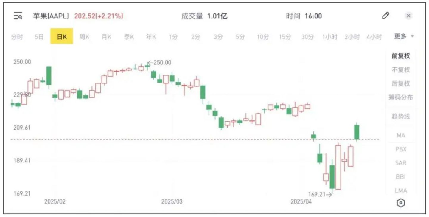 图:苹果股价走势图(截至北京时间2025年4月15日)