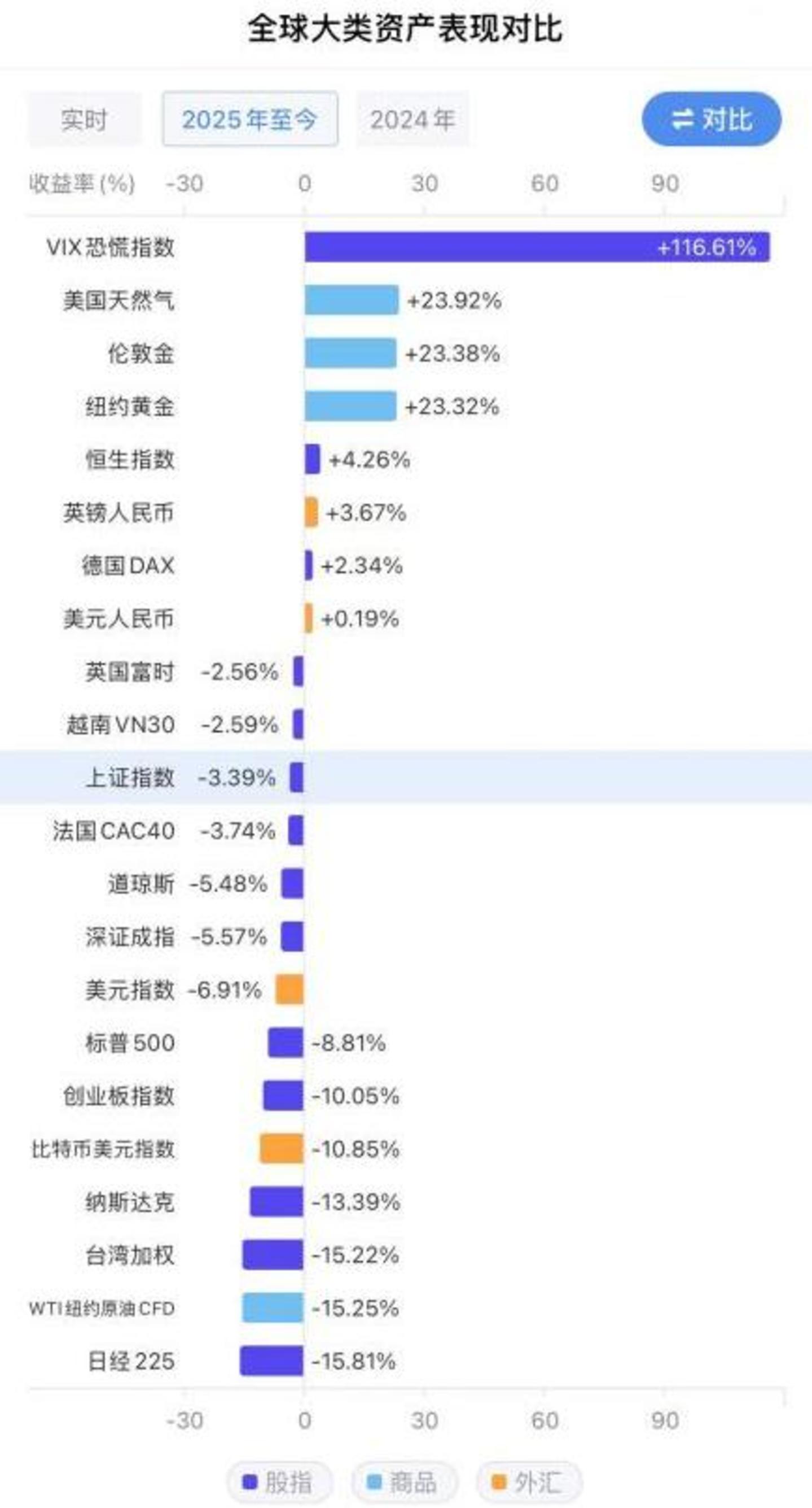 今年以来,黄金价格上涨超过23%,位列全球大类资产前茅。权益资产则相形见绌,标普500、纳斯达克、日经225指数垫底,美股七巨头雄风不再。