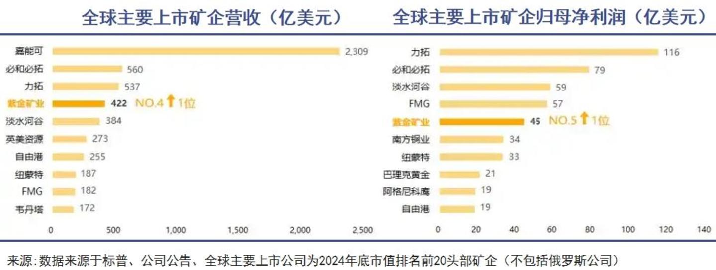 纵观全球,紫金矿业已是世界第4大矿企,归母净利润也能排在全球第5,超过纽蒙特、自由港等知名企业。