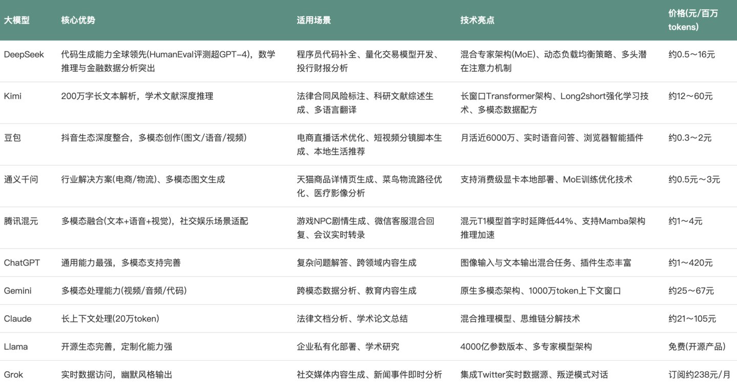 以下是国内外部分主流大模型的对比(表格较大,PC查看效果更佳):