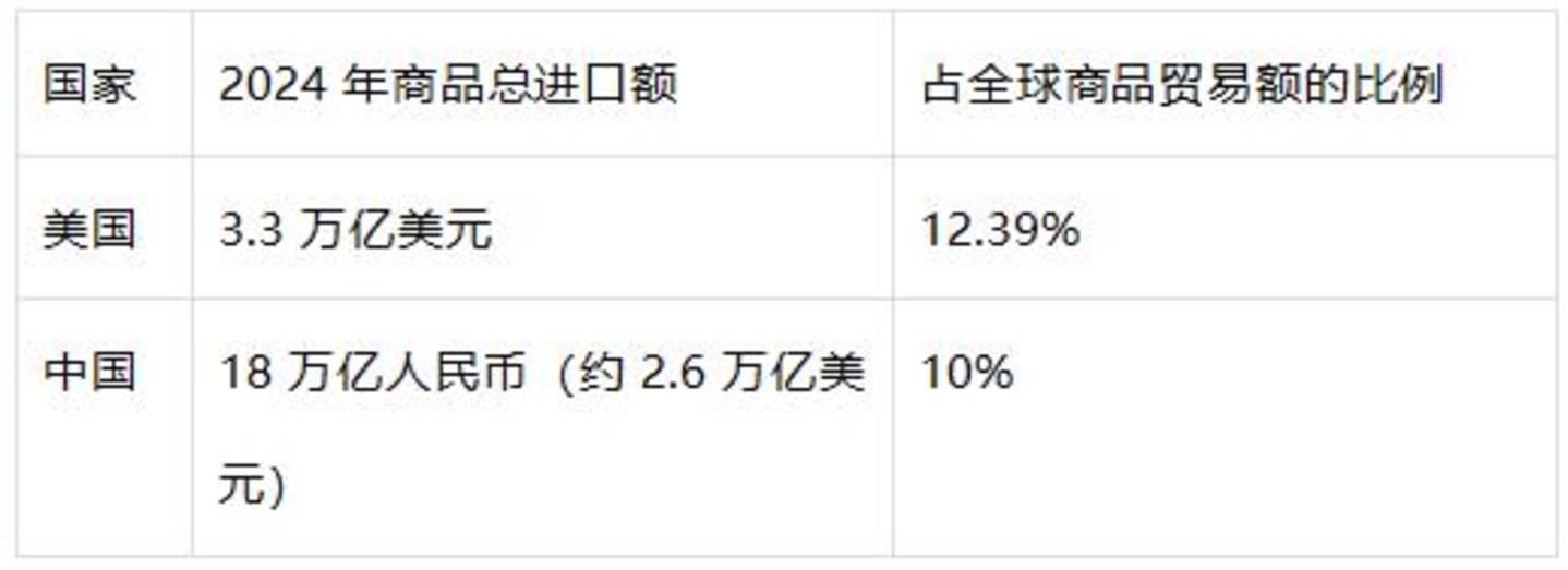 不过很多时候,我们比较少宣传,中国已经连续16年成为全球第二大进口国。来看组2024年的中美进口的对比数据: