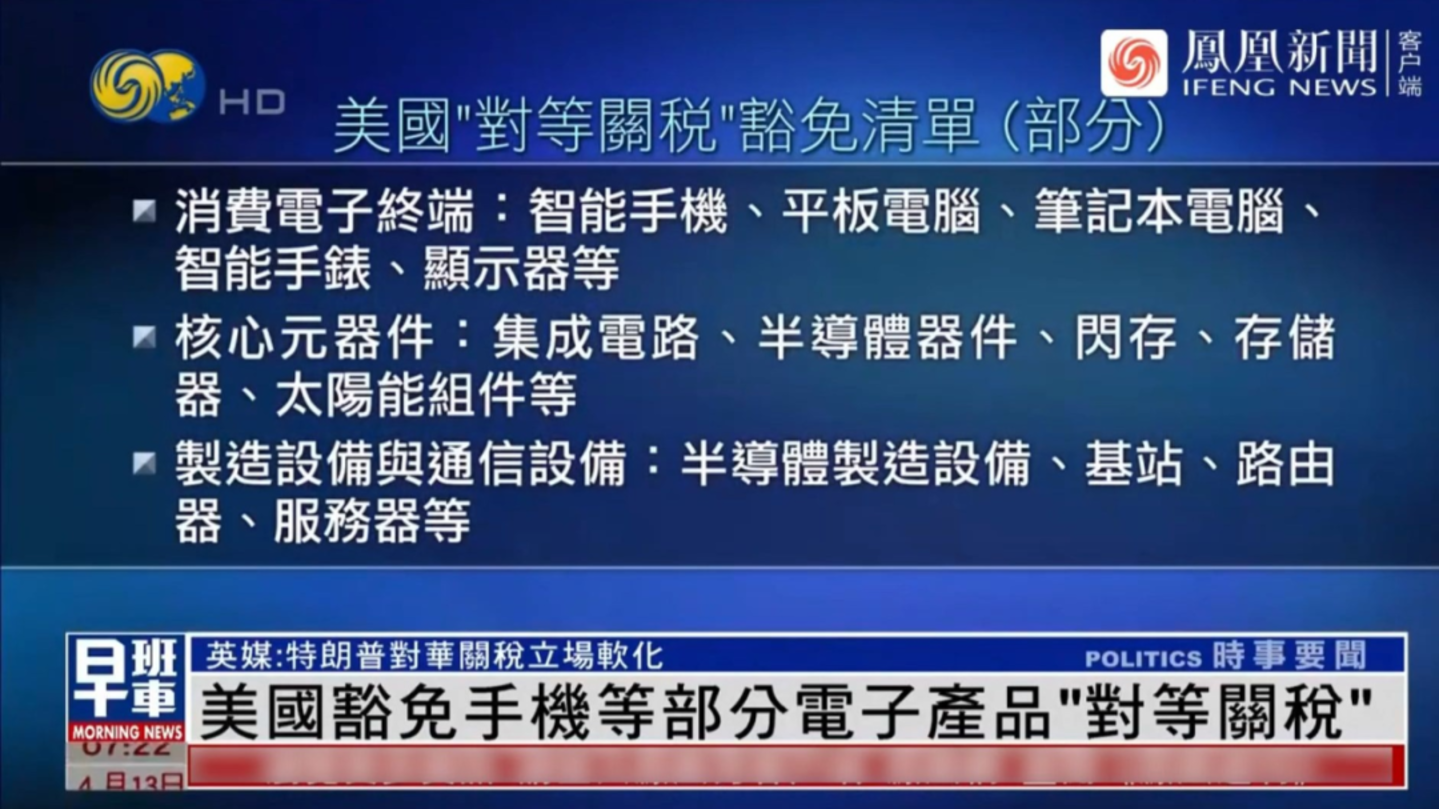 一天后,4月12日,美方又进行对外宣称,针对电子产品及零部件的豁免只是暂时的,并表示对电子产品征收的单独关税“很快就会出台”。