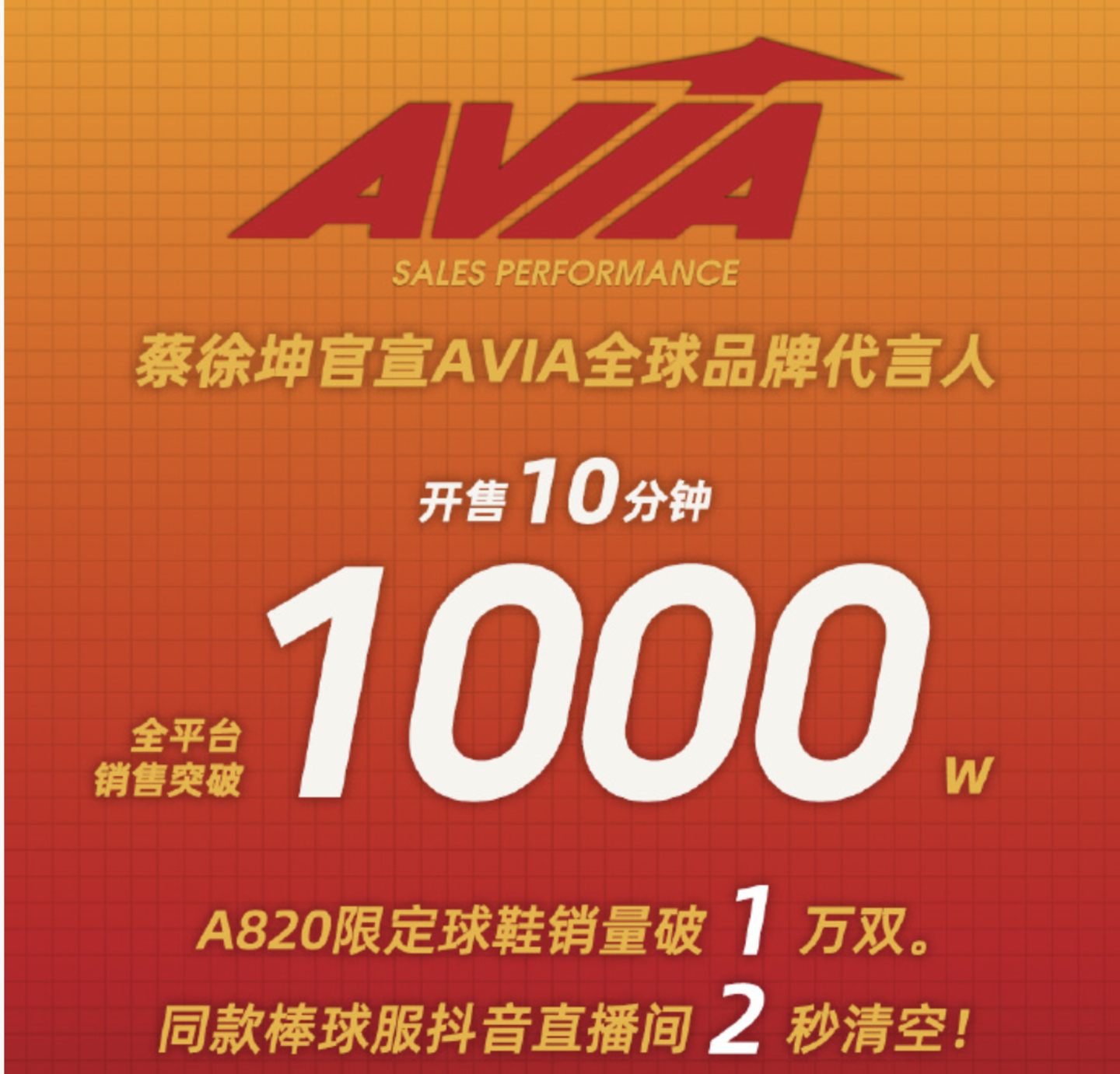 在这样的市场背景下,AVIA 签约蔡徐坤后 10 分钟破千万的销售额,更像是在绝境中抓住的一根数据救命稻草。