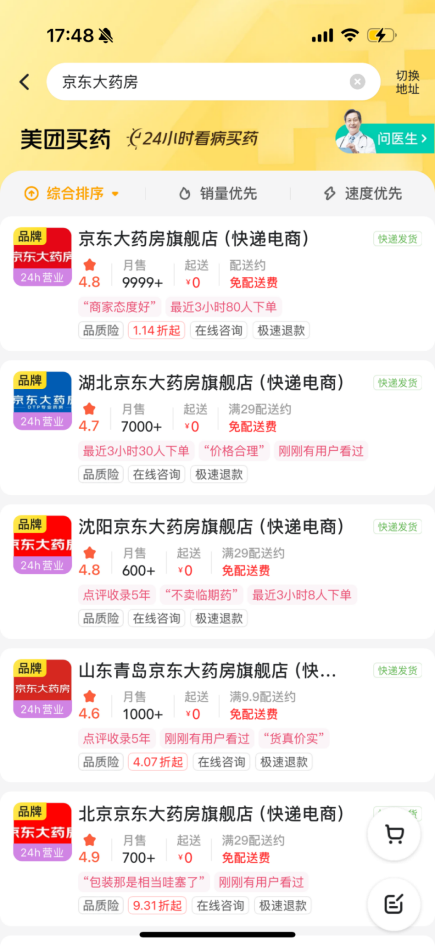 今天从美团App首页进入“闪购”后,依然可搜到正在经营的京东便利店(非自营)与七鲜超市(自营)。距离我家最近的京东便利店(京溪云景店)月销5000+,广州还有月销上万的单店,这对本地商家来说算很大的生意规模了——24年永辉生活自营到家业务覆盖920家门店,日均单量30.7万单,算下来单店月均1万单。