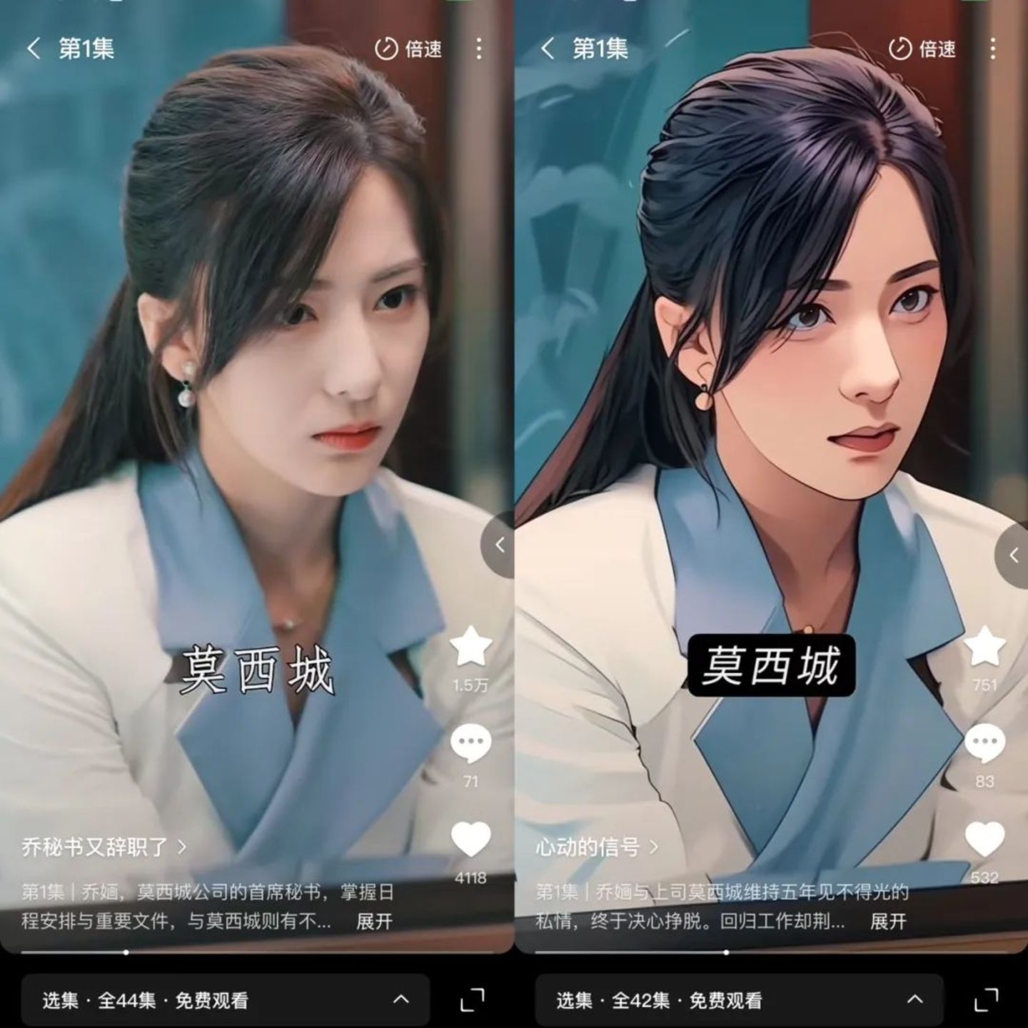 而看好动漫短剧的真人短剧从业者们似乎已经找到了更高效的生产方式,比如对已有真人短剧进行画风转绘。在红果已经上线的动漫短剧中,有一批是由真人短剧转绘而来。比如近期上线的《心动的信号》,就转绘自真人短剧《乔秘书又辞职了》。今年3月,灵境AI产出约10部AI转绘漫剧,目前的订单已经排到5月中下旬,自己则购入了超过300部短剧版权用于AI转化。