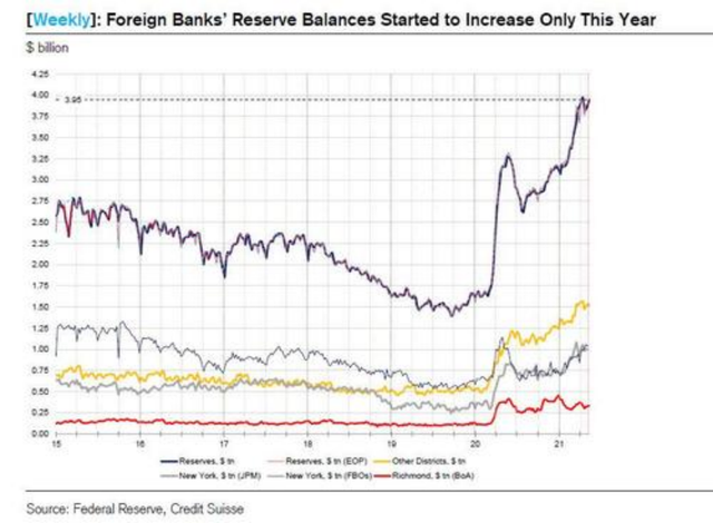 但与2015年至2016年期间有所不同的是,外国银行吸收准备金的能力也是有限的。越来越多的外国银行的资产负债表显示,它们吸收准备金的能力已经不足。上周,Zoltan也重申了他的观点: