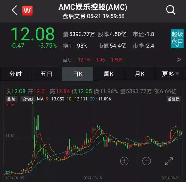 虽然事后股价有所回落,但是随着AMC破产危机解除,院线重新开放,该公司的股价从年初最低2美元附近,上涨至5月21日的12美元,上涨幅度超过500%。