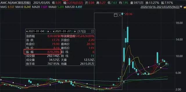 随后,在2月的“散户革命”中,AMC成为散户抱团的标的之一,估计一度暴涨870%。