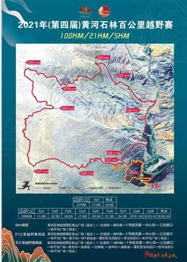 据赛事活动报道称,今年黄河石林山地马拉松百公里越野赛暨乡村振兴健康跑,包括山地健康跑(不限人数)、21公里越野赛(600人)、100公里越野赛(400人)三个组别。赛道多为自然起伏的山地,山间土路或沙石路多,有爬坡、下坡障碍,从景区入口到山下龙湾村的22道弯修在悬崖上,全长2.3公里,落差216米,多弯道、山坡。