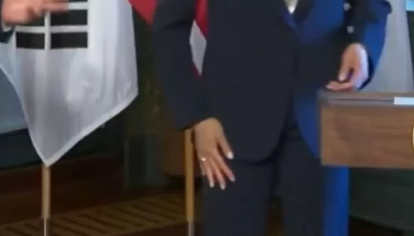 哈里斯的这一小动作迅速引发网友关注。有网友认为哈里斯可能只是出于习惯擦了擦手↓