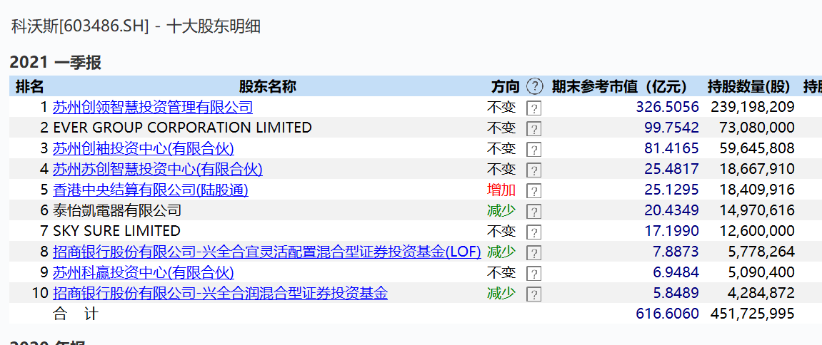 截至一季度末,创领投资为科沃斯的控股股东,持股比例41.78%,按最新收盘价计算,这部分解禁市值约382亿元。Ever Group、创袖投资、Sky Sure分别为科沃斯的第二、第三、第七大股东,解禁市值分别达117亿元、94.34亿元、20.16亿元。