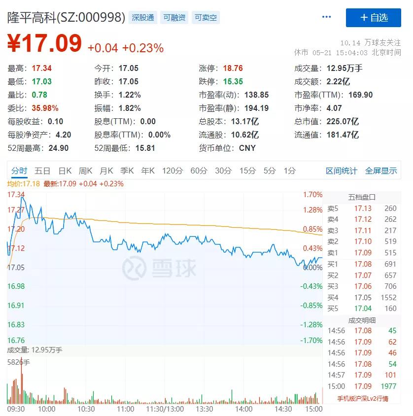 A股市场中还有一家以袁隆平名字命名的股票——隆平高科。这也是第一家以著名科学家冠名的上市公司。