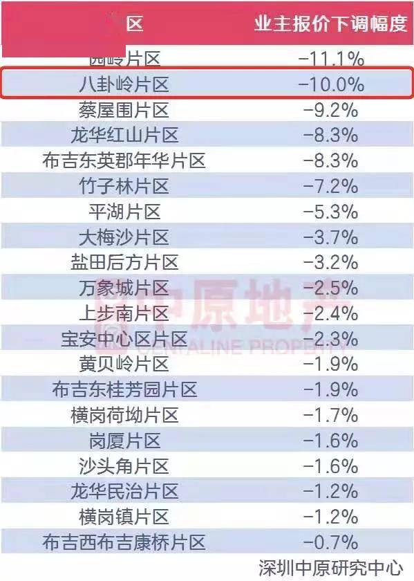 但深圳中原监测的数据显示,4月18日-24日的一周内,八卦岭片区报价下跌10%。