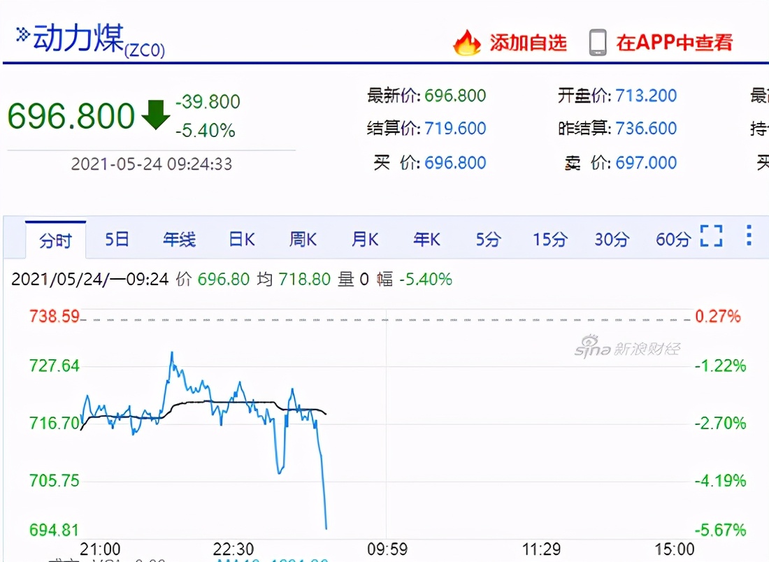 5月24日早盘,动力煤主力合约下破700元/吨关口,为4月20日以来首次。