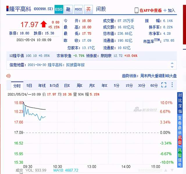 目前,隆平高科已经开板,截止发稿,报17.97元,涨幅达5.15%。