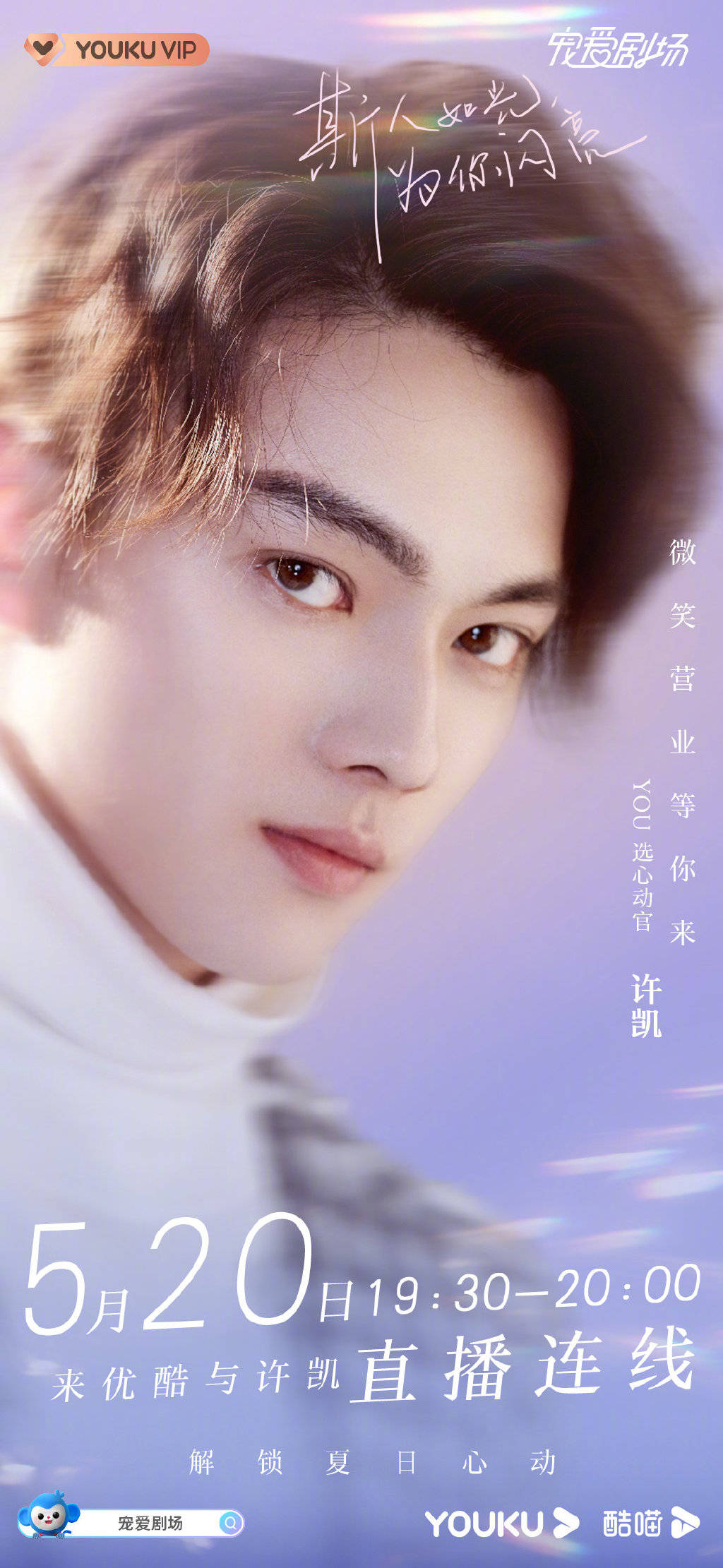 而紧接着的520直播活动,优酷“宠爱剧场”更是集中发力,再次强化“相爱正当时”的主题,尽可能宠粉惠粉。不仅让YOU选心动官姚弛、马闻远、许凯、陈星旭、王子异、牛骏峰接力完成了3小时的直播,一次性联动多个人气男艺人,早前还线上抽取连线粉丝的名额以及征集问题,让用户直接参与直播连线的过程,互动体验感再次升级。