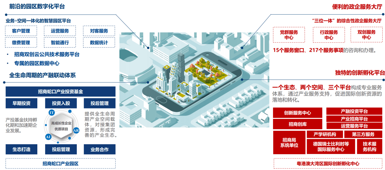 蛇口产园基础设施项目均位于蛇口工业区,重点发展网络信息、科技服务、文化创意等新兴服务业,与前海区块形成产业联动、优势互补。