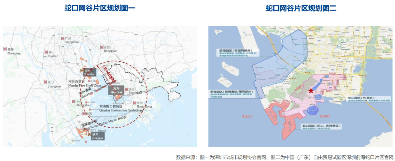 蛇口片区位于深圳南头半岛东南部,东临深圳湾片区。2011年,深圳市委、市政府相继颁布《前海深港现代服务业合作区条例》、《前海湾保税港区管理暂行办法》等相关条例,将前海定位为“特区中的特区”。 2018年11月,深圳市人民政府正式批复《中国(广东)自由贸易试验区深圳前海蛇口片区及大小南山周边地区综合规划》,深圳前海蛇口自贸片区于2015年4月27日挂牌成立,是中国(广东)自由贸易试验区的一部分。