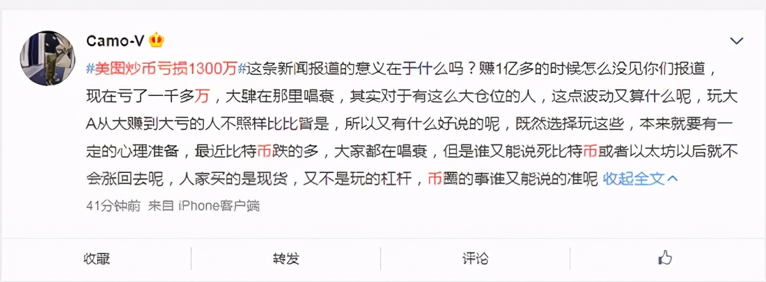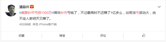 #美图炒币亏损1300万#登上热搜,网友表示币圈亏钱很正常,美图又没有上杠杆,加密货币波动这么大,说不定哪天又回来了。