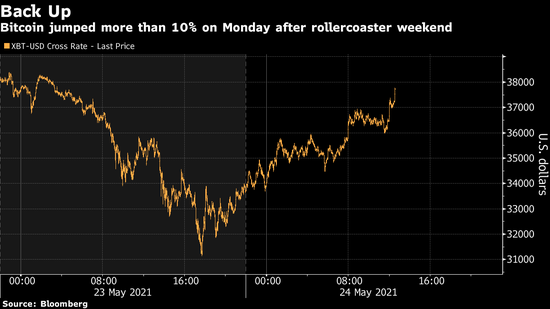 截至纽约时间上午7:37,这种全球最大的加密货币上涨了12%,约为37800美元。在过去的两周中,数字货币一直饱受剧烈波动的困扰,其中比特币价格在周日暴跌了18%。