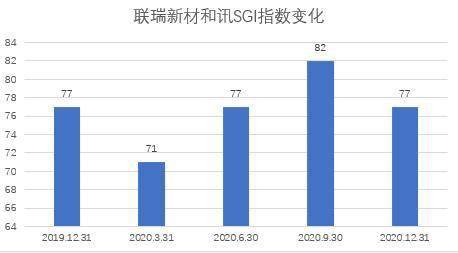 2021年5月1日,联瑞新材最新的和讯SGI指数评分出炉,公司获得77分的高值。联瑞新材的和讯SGI指数评分基本在70分以上,2020年第三季度,公司的和讯SGI指数评分录更是高达82分,其它四个季度基本维持在77分左右。
