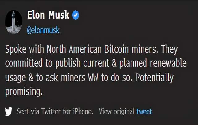 马斯克称与北美比特币矿商进行了交流,表示他们致力于发布现有可再生能源使用情况和未来使用计划,并呼吁全球矿商都这样做。