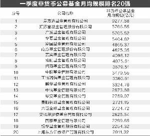 一季度非货币公募基金月均规模排名20强榜单显示,截至一季度末,位列全行业前20强的基金公司合计月均规模7.79万亿元,相较去年四季度末的5.76万亿增长了35%。