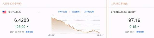 5月25日,人民币(6.4193, -0.0147, -0.23%)中间价报6.4283,上调125点,上一交易日中间价报6.4408,在岸人民币上一交易日收报6.4293。