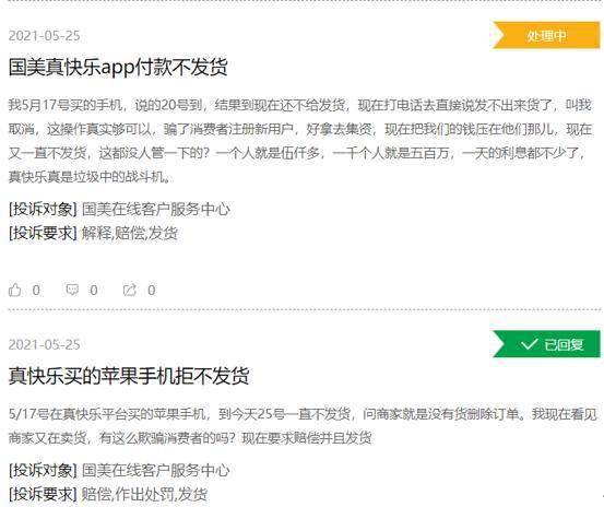 其中在不发货方面,相信很多消费者对国美电器的售后深有感触,如今国美电器移动端已改名为“真快乐”APP,然而改了名的国美并未给消费者带来快乐,反而是漫长的等待和煎熬。