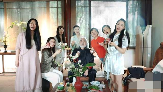 两人四目相对,举案齐眉相敬如宾,一家五口齐齐出镜,十分和谐甜蜜。除了妻子儿女之外,此次寿宴还来了许多朋友。张纪中被7位美女环绕其中,众人齐齐举杯祝他生日快乐。