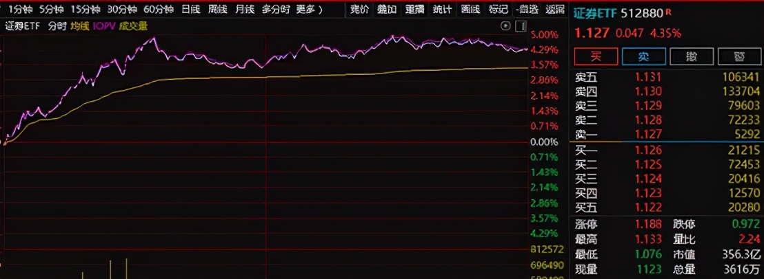 从上涨的板块来看,首推券商这一被誉为“牛市旗手”的板块,该板块今天的确起到了引领市场的作用。证券ETF的涨幅都超过了4%。关于券商股上涨有几个说法:一是券商股已经跌了许久,估水平较低,基金配置少;二是关于引入T+0交易机制的传闻不断;三是近期又有关于调整印花税的说法。其实,无论传闻有多少,铁律只有一条,那就是便宜。