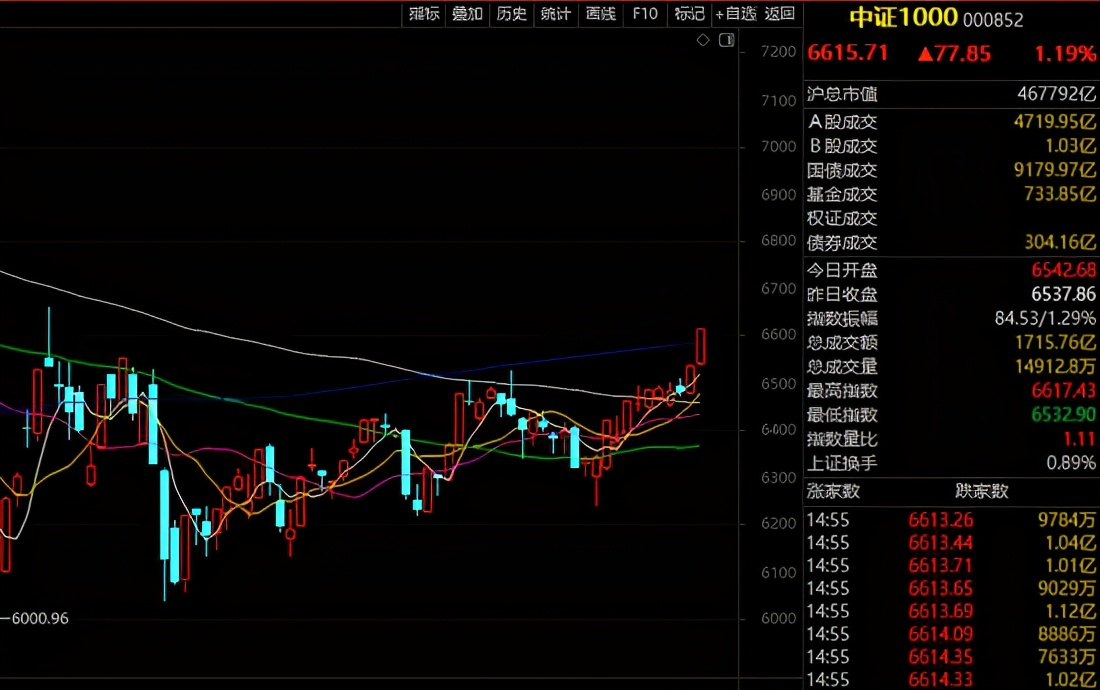 权重股上涨,小市值股票表现却相对一般。中证500指数、中证1000指数(6615.7141, 77.86, 1.19%)收盘涨幅均略高于1%,涨幅远远小于其他主要指数。个股方面,截至收盘,有1200多只个股逆市下跌,另外还有2300多只个股涨幅小于大盘。整体看,这意味着跑输大盘的个股占比超过84%。